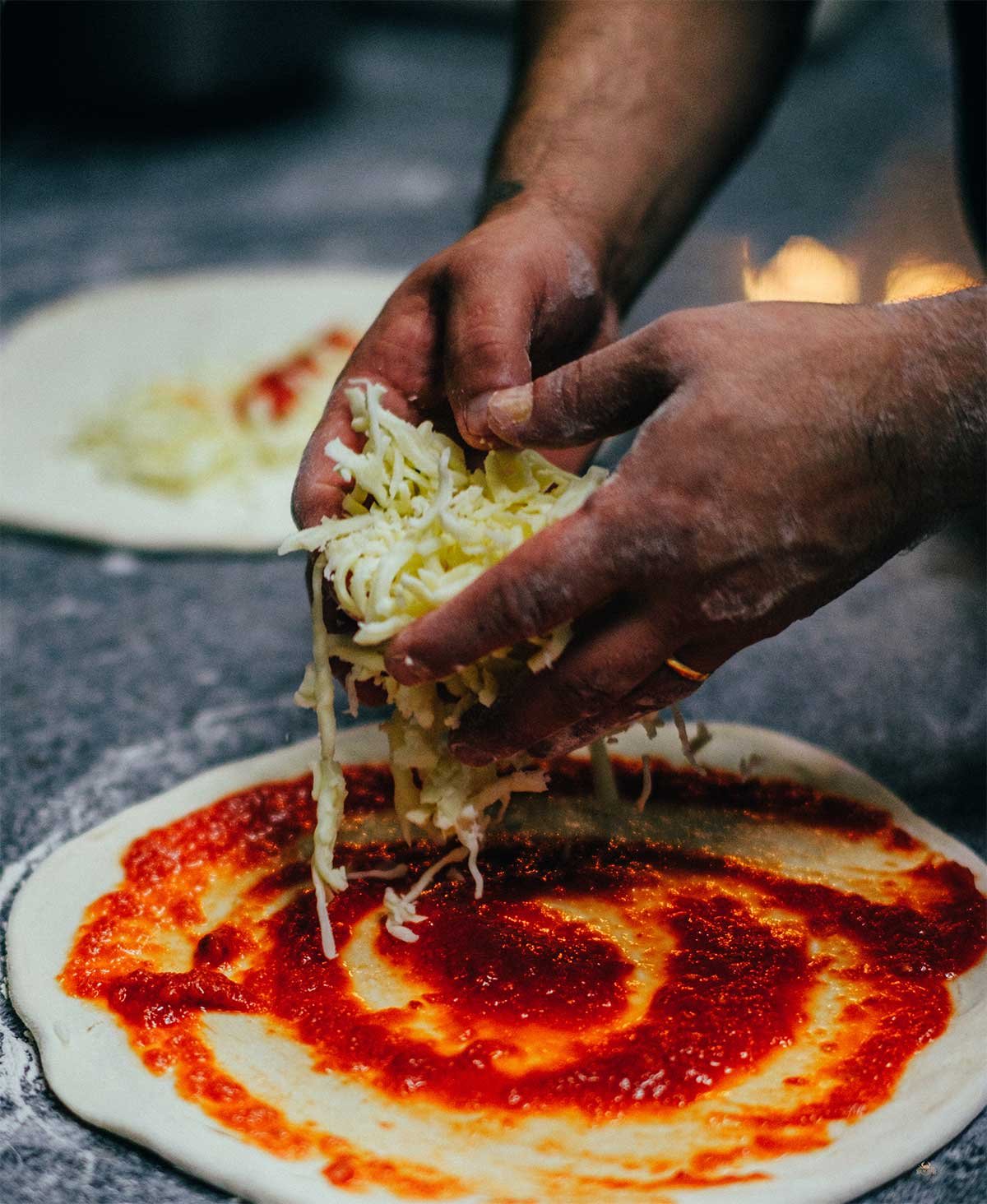 Red sauce, mozzarella